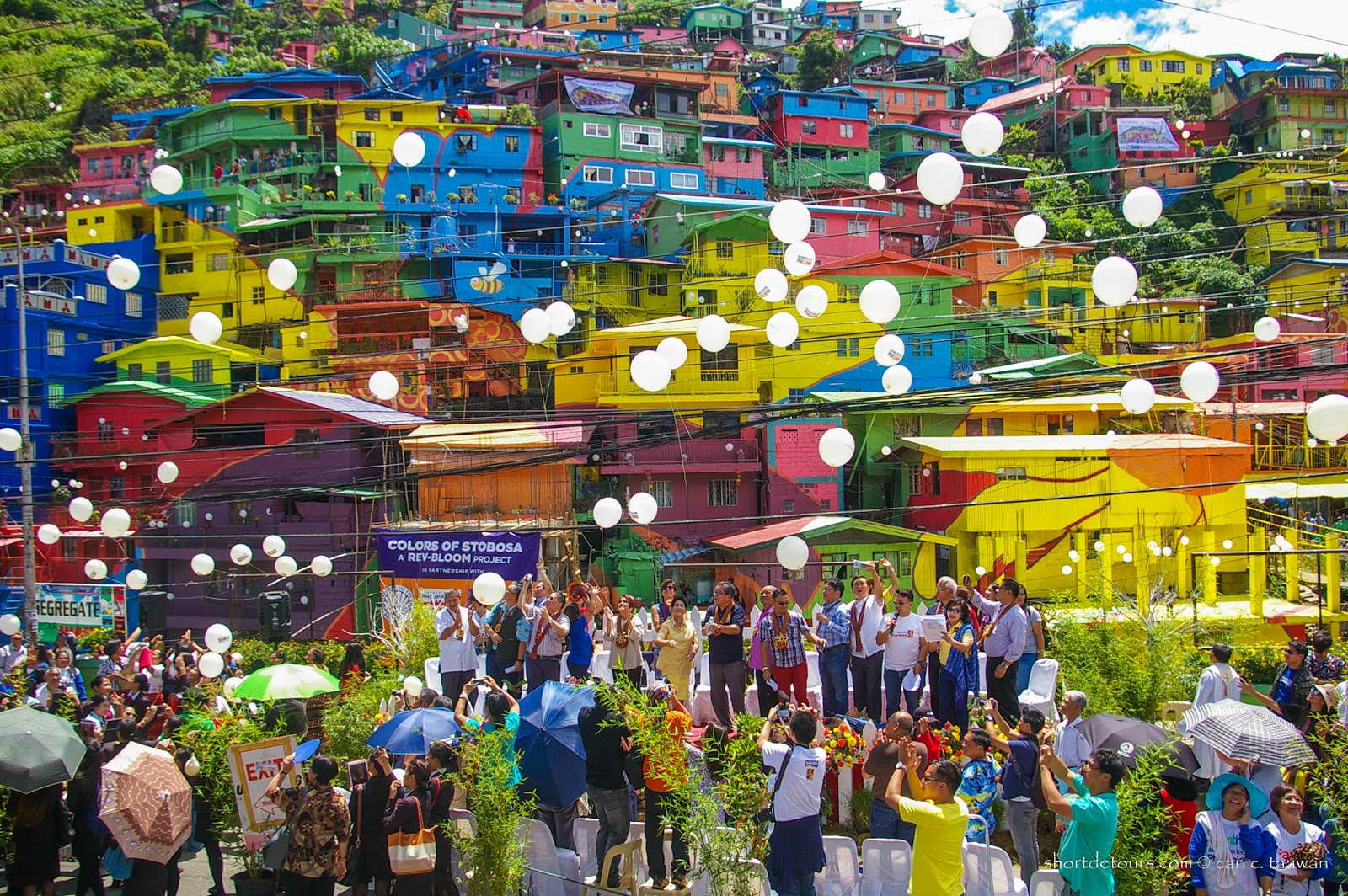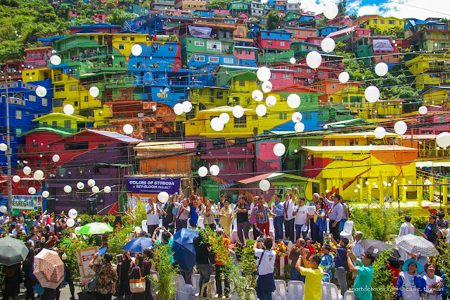 Residential buildings in Sitio Stone Hill, Botiwtiw and Sadjap of Barangay Balili are transformed into a huge canvas to create a Favela-inspired mural masterpiece.